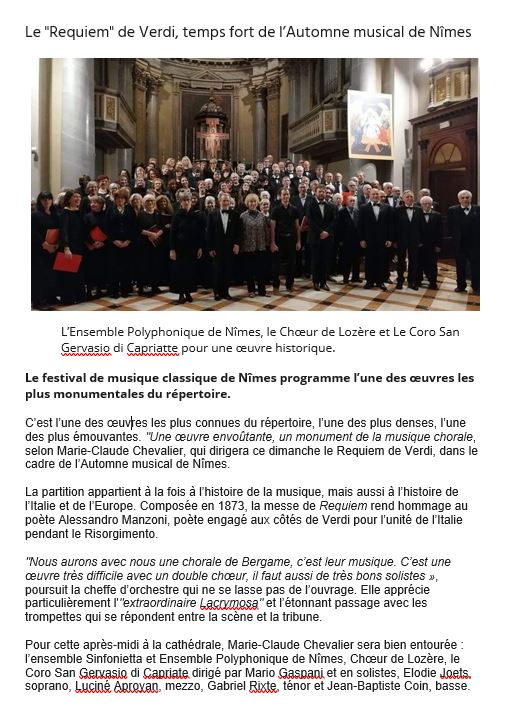 Midi-Libre 13 juillet 2025, conférence de presse du 3 juilletMidi-Libre 23 avril 2024, Régine Bourgade, première adjointe municipale, et les choristes avec la Périchole.